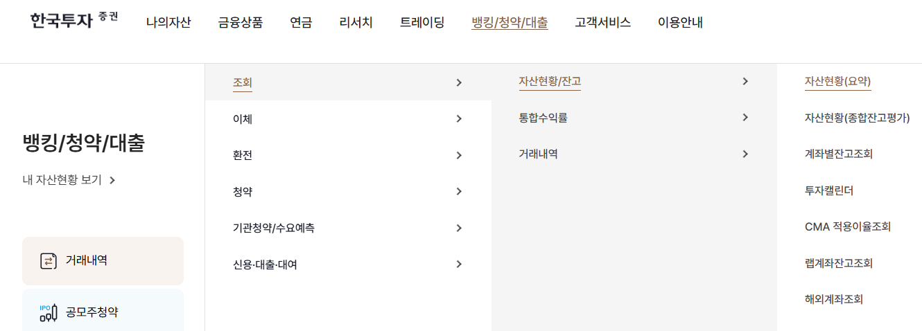 한국투자증권 홈페이지의 주요 메뉴는 명확하게 구성되어 있어 원하는 서비스를 빠르게 찾아 이용할 수 있습니다. 아래는 각 메뉴와 제공되는 기능에 대한 상세 설명입니다.