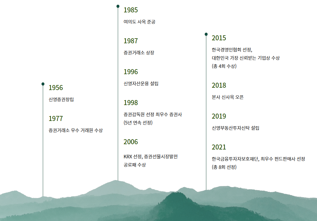 1956년 신영증권 창립되었고, 7개 영업점이 있습니다.
