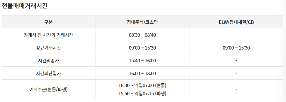 장개시 전 시간외 거래시간 - 08:30 ~ 08:40