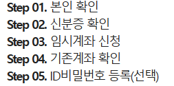 본인확인, 신분증확인, 임시계좌신청, 기존계좌 확인, ID비밀번호 등록 (선택_)