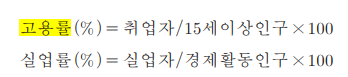 고용률이란 15세 이상 인구 중 취업자의 비율을 말합니다. |
