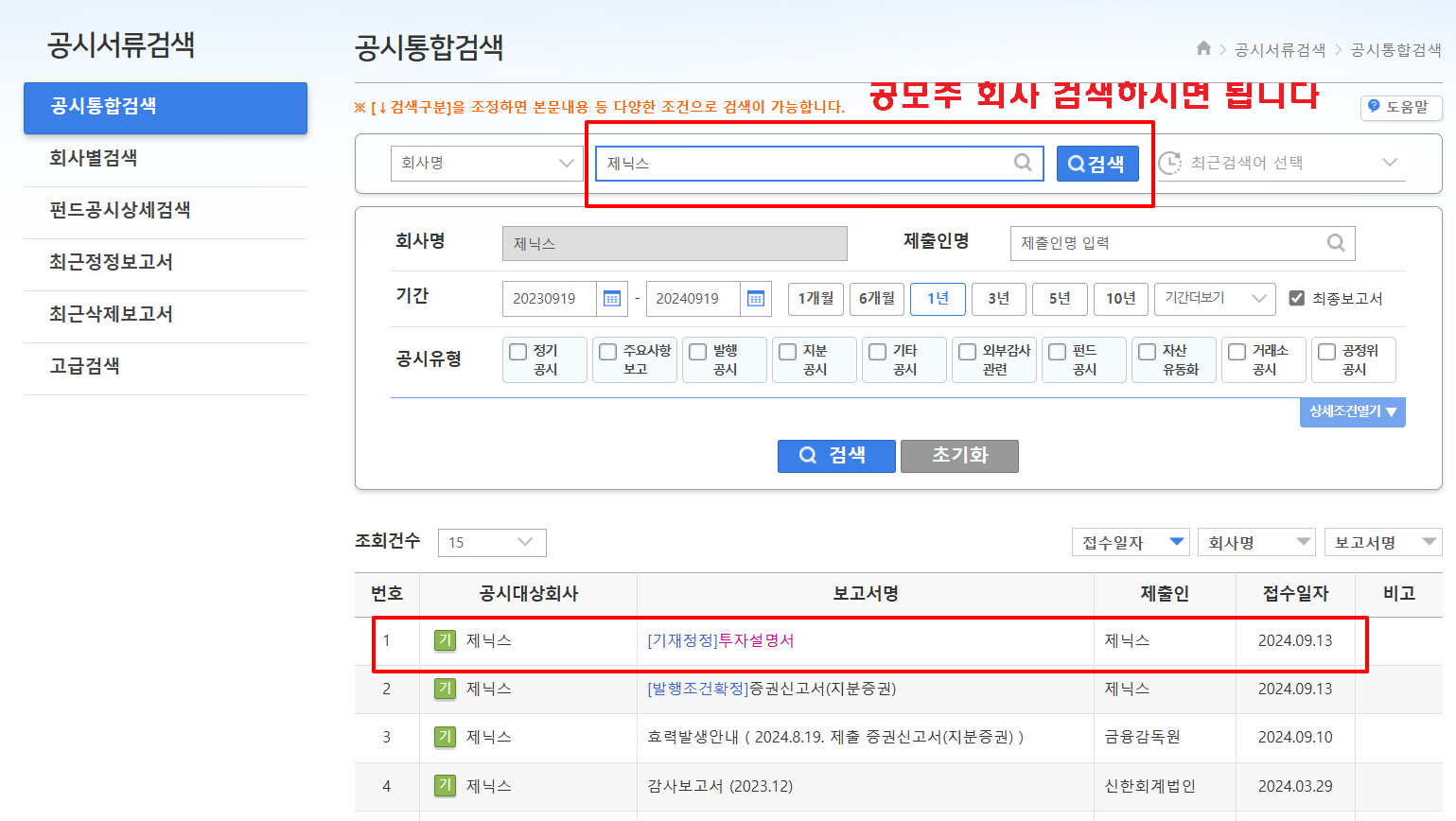 - 다트 홈페이지 - 공시 통합검색 - 공모주 회사명 입력 - 투자 설명서 선택 합니다.