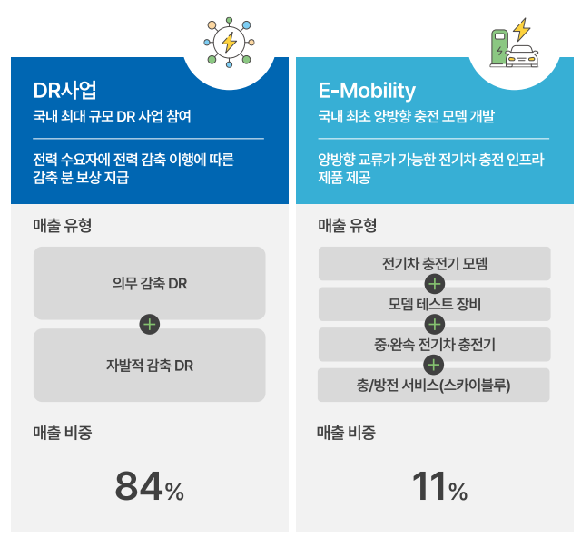 전력시장에서는 수요관리 서비스 사업이 현재 주력 사업입니다.