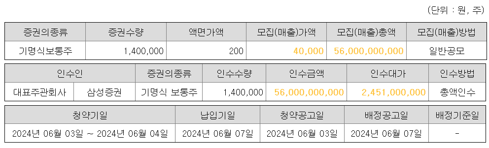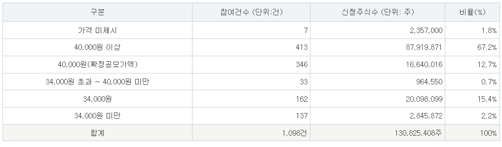 - 희망공모가액 : 34,000원 ~ 40,000원