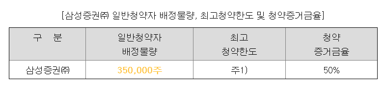 * 삼성증권 : 청약 당일 비대면 계좌 개실시 참여할 수 있습니다.