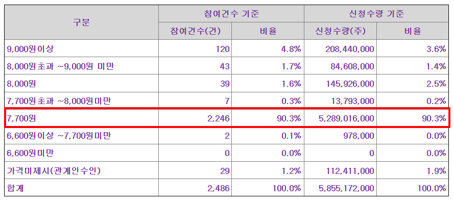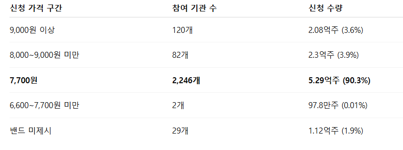 - 상단 초과 가격 신청도 존재 - 일부 기관은 최대 9,000원 이상에 신청하며 프리미엄을 부과했습니다.