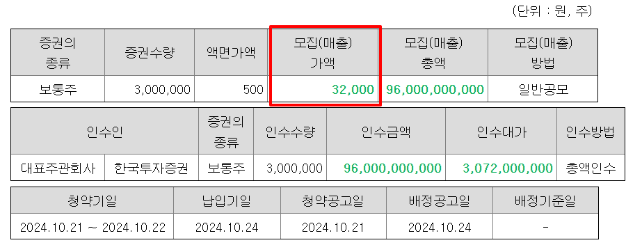 수요예측결과 확정공모가 32,000원 , 상장일은 10월 31일(목)입니다.