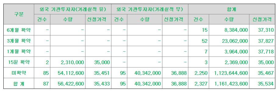 기관참여 2,317 건 기관경쟁률 516.19 : 1 신청주식수 1,161.423.000주 |
