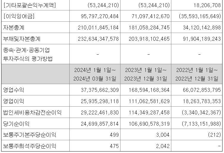 2023년 매출액과 영업이익은 지난해 같은 기간보다