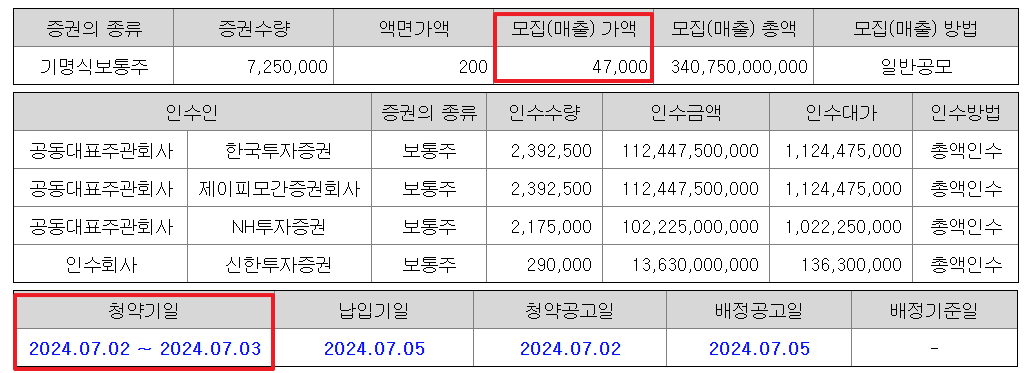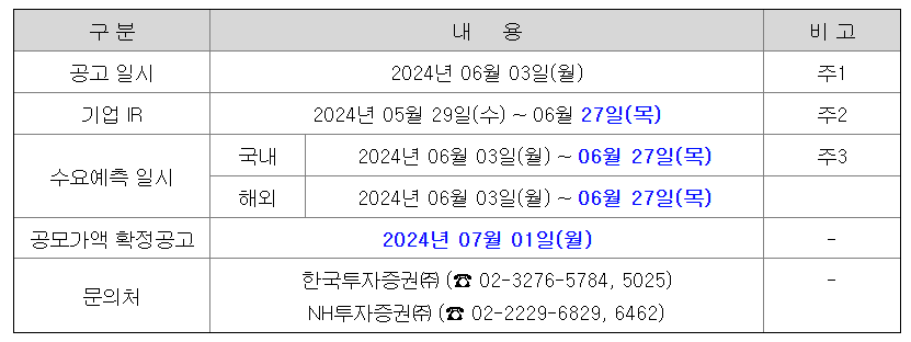 공모가액 확정공고 : 2024년 7월 1일 (월)
