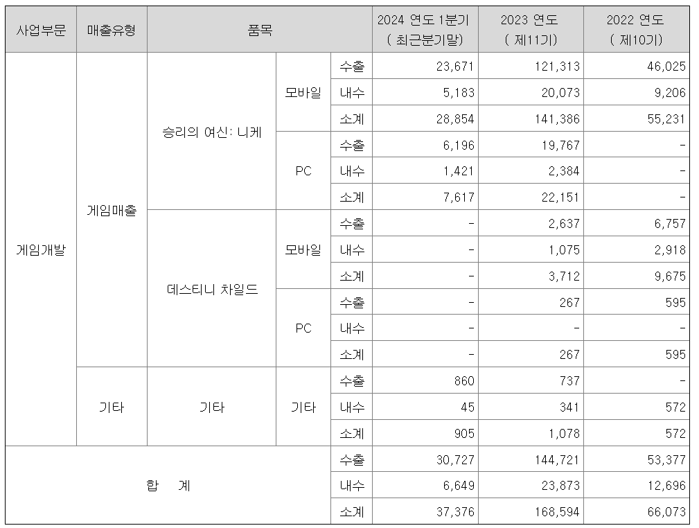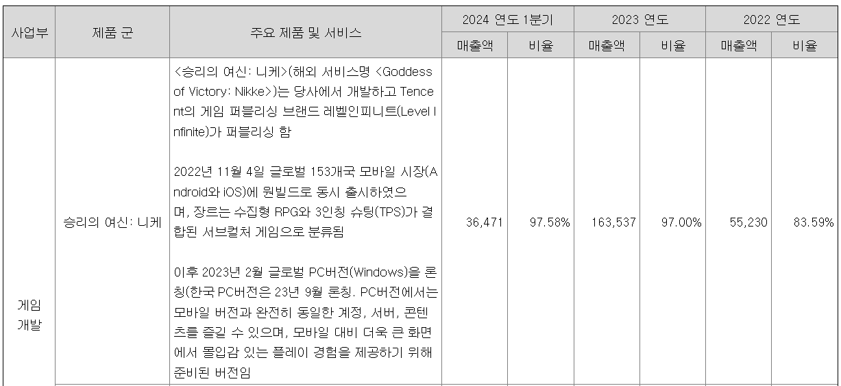 2024년 1분기 매출은 거의 대부분인 97.58% <승리의 여신 :니케>에서 발생하고 있습니다.