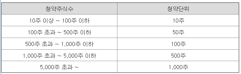 한국투자증권, NH투자증권, 신한투자증권 청약단위