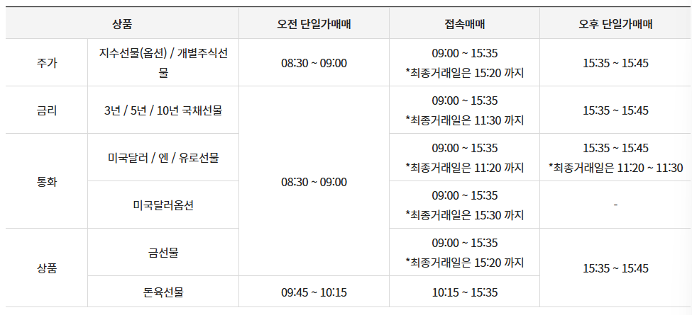 장개시 전 시간외 거래시간 - 08:30 ~ 08:40
