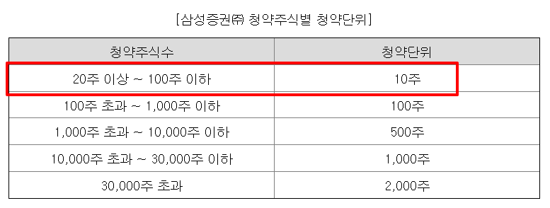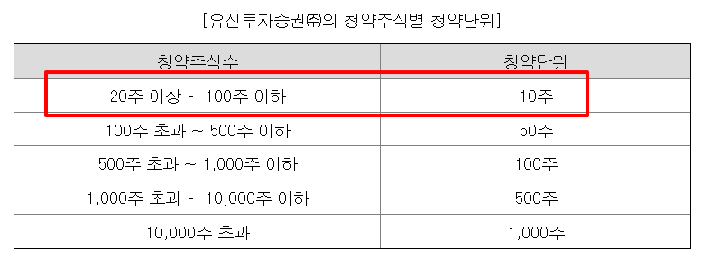 삼성증권, 유진투자증권, 유안타증권 최소쳥약단위 20 주 / 최소청약증거금 300,000원 |