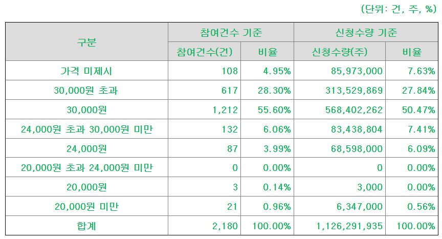 수요예측 참여기관 99%가 밴드 상단 24,000원 이상의 가격을 제시했습니다.