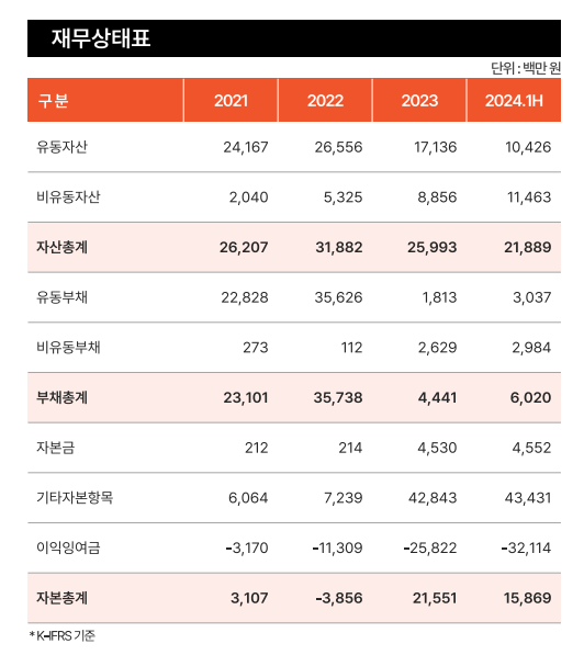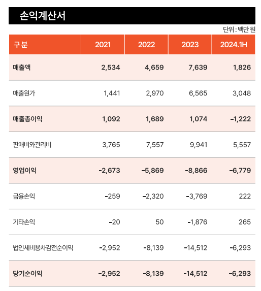 2024년 반기 매출 18억, 영업이익 -75억 적자