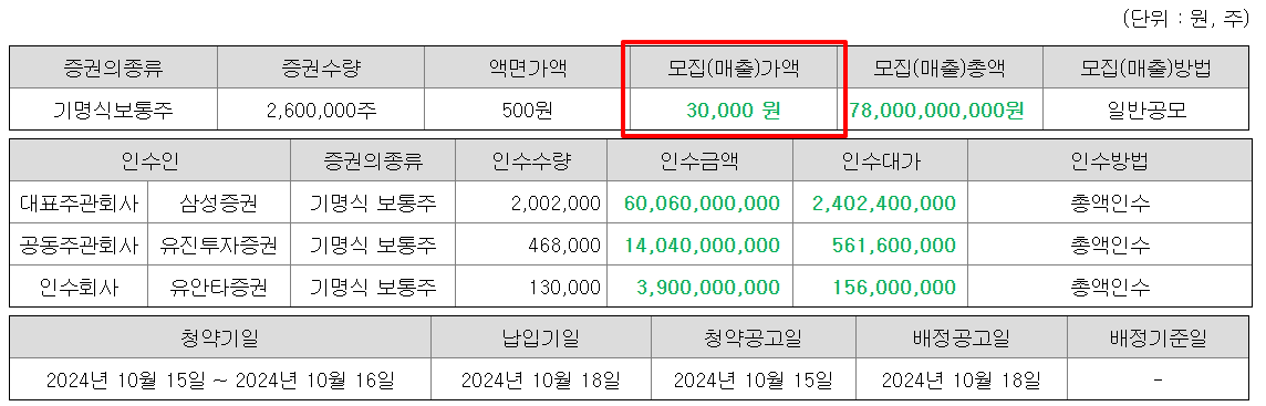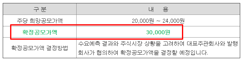 30,000원 (희망공모가 20,00원 ~ 24,000원) |