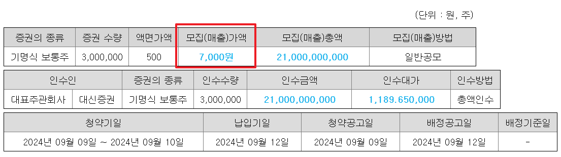공모가는 희망공모가 밴드보다 높은 7,000원으로 결정되었고,