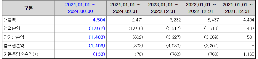 - 2024년 상반기 영업손실 : 18억원
