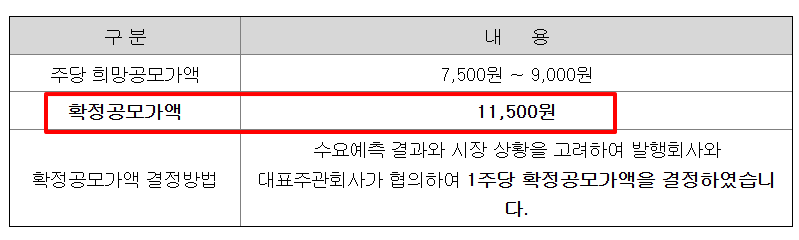 | 공모가 | 11,500원 ( 확정가) |