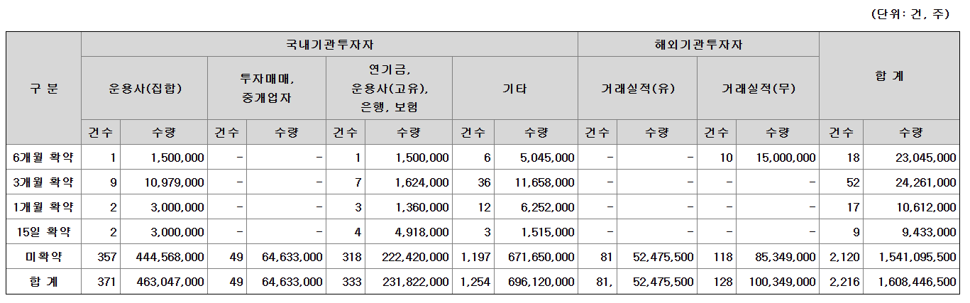 의무보유 확약기간별 수요예측 참여내역