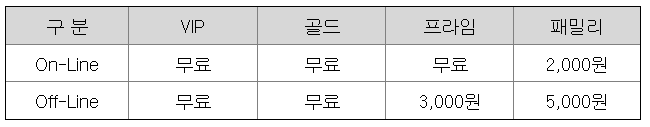 오프라인에서는 골드등급 이상은 무료이고, 프라임 등급은 3,000원, 패밀리는 5,000원 수수료가 부과됩니다.