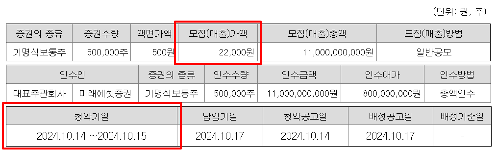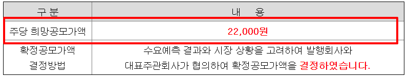 | 확정공모가 | 22,000원 (희망공모가 22,000원 ~26,000원) |