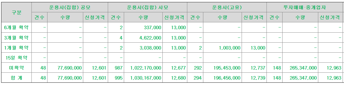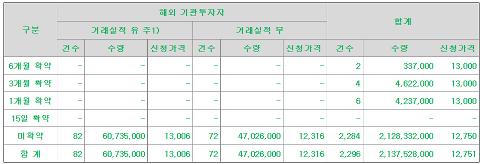 의무보유확약기관별 수요예측참여내역