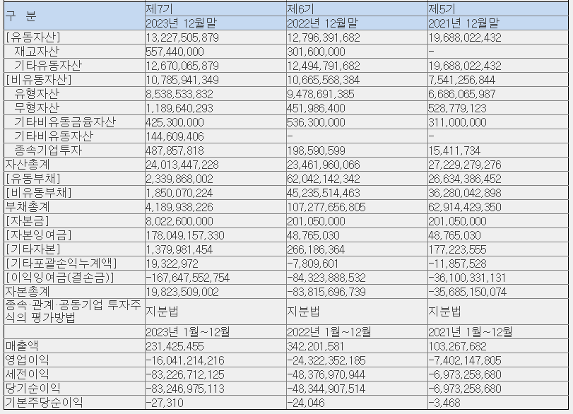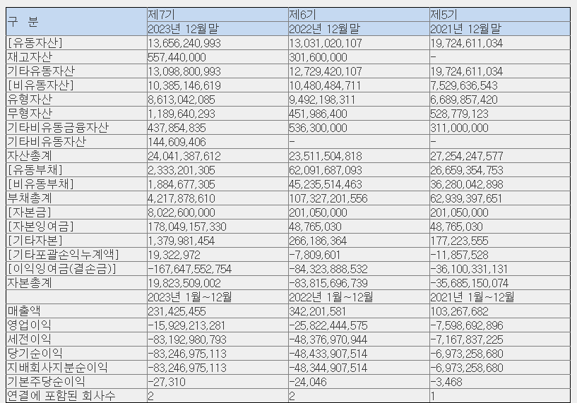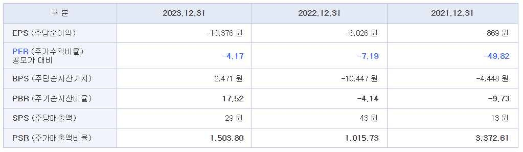 - 2022년 매출 3억 원, 당기순손실 -484억 원