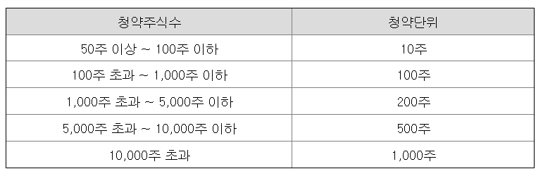 | 주관사 | 최소청약주수 | 최소증거금 |