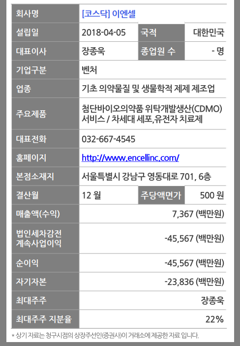 - 업종 :기초의약물질 및 생물학적 제제 제조업