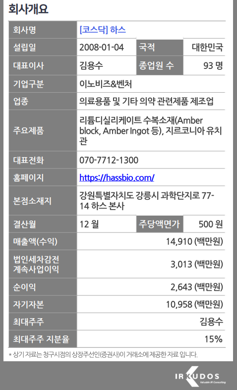 | 하스 | 공모주일정 : 5월 27일 ~28일 희망공모가 : 9,000원~12,000원 환불일 : 5월 30일 상장일 : 미정 주관사 : 삼성증권 |